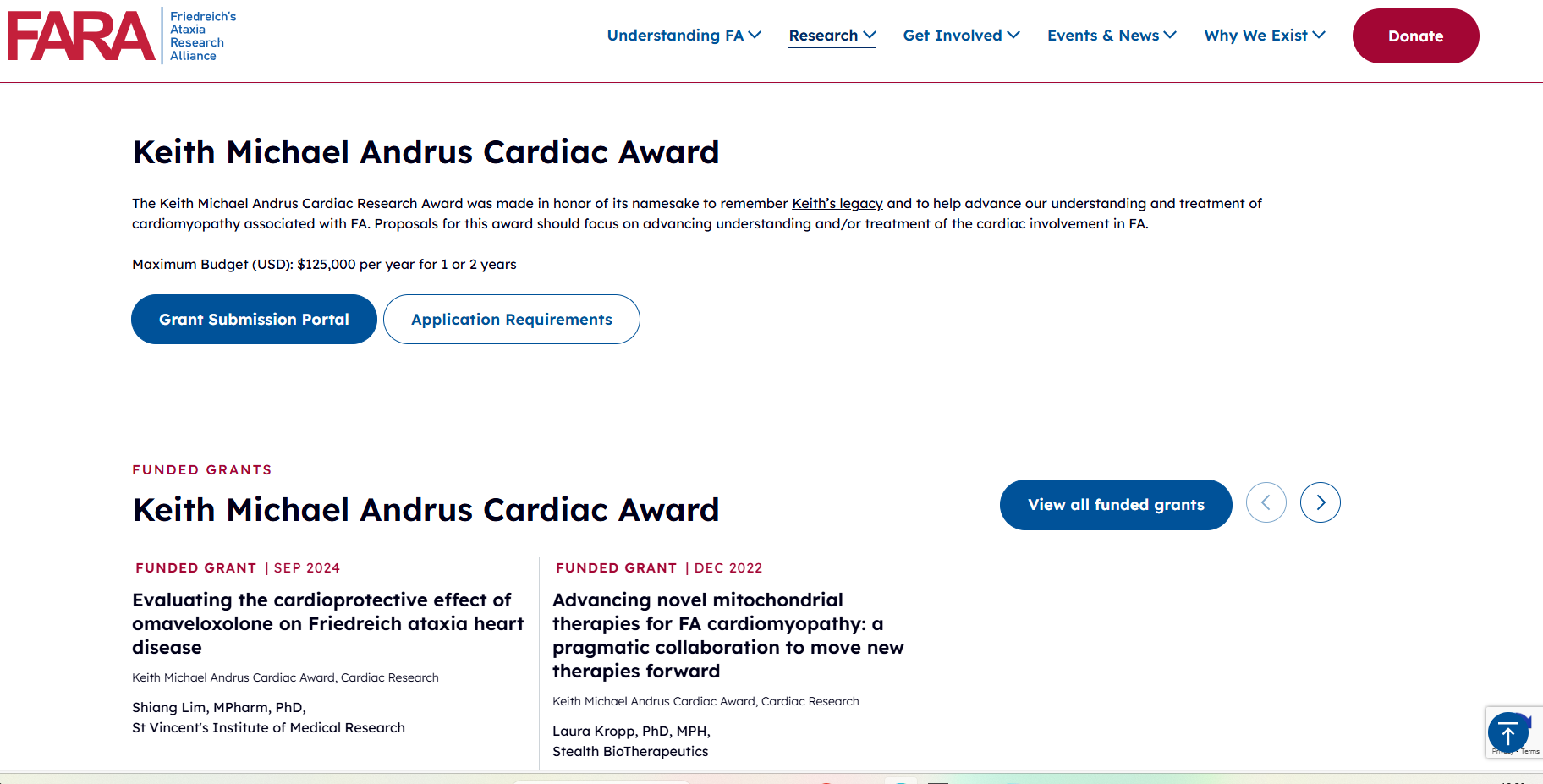 | תיאור | FARA accepts proposals focusing on advancing understanding and/or treatment of the cardiac involvement in FA.
